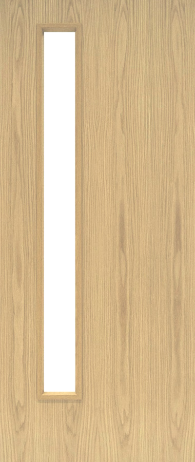 Flush door leaf with 1 long vision panel and frame. Complete with fire seals and ironmongery.