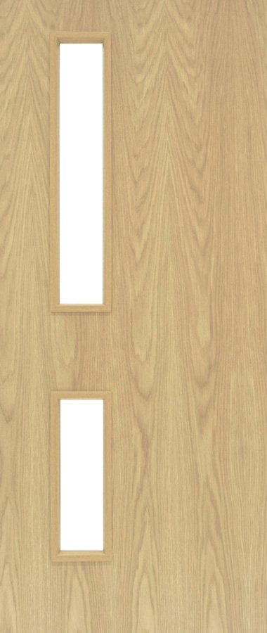 Flush door leaf with 2 split vision panels and frame. Complete with fire seals and ironmongery.